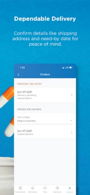Provides a detailed view of your active prescriptions and allows for easy ordering. Also includes refills remaining, drug name, strength, prescriber info, prescription number and status (in transit, delivered, refill too soon, Prior Auth needed, etc).