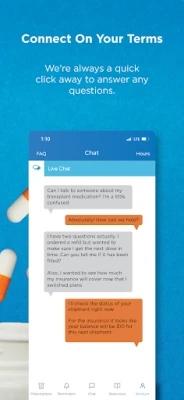 Questions about your prescriptions or copay? Concerns about side effects or missed doses? Connect with our team and get real time help and answers when you need it.