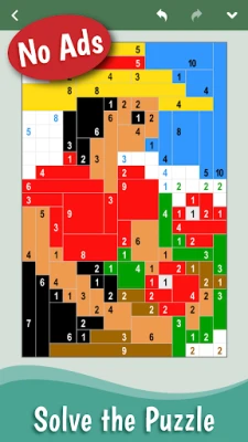 Find the blocks, fill with color and discover a hidden pixel-art picture! Each puzzle consists of a grid containing clues in various places. The object is to reveal a hidden picture by dividing the whole area of the grid into rectangular blocks according to the rules.