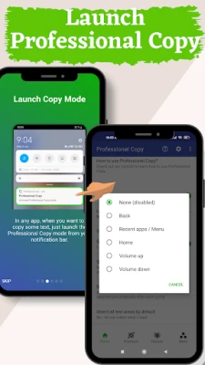 2. activate the Professional Copy accessibility service (Settings > Accessibility) than 'ENABLE'