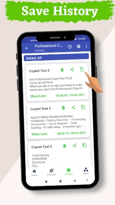 • Save Copied Text as history Which Can we Used Further And Edited.
