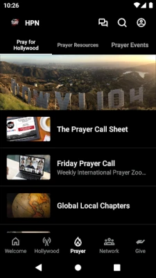 The Hollywood Prayer Network (HPN) App is the #1 way to pray for Hollywood and get prayer support as a creative.