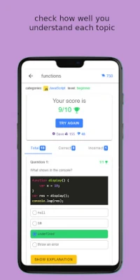 🌟 Designed for both beginner and experienced JavaScript programmers, our app welcomes all learners seeking to expand their JavaScript knowledge.